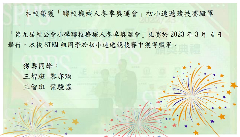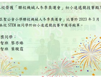 本校榮獲「第九屆聖公會小學聯校機械人冬季奧運會」初小速遞競技賽殿軍