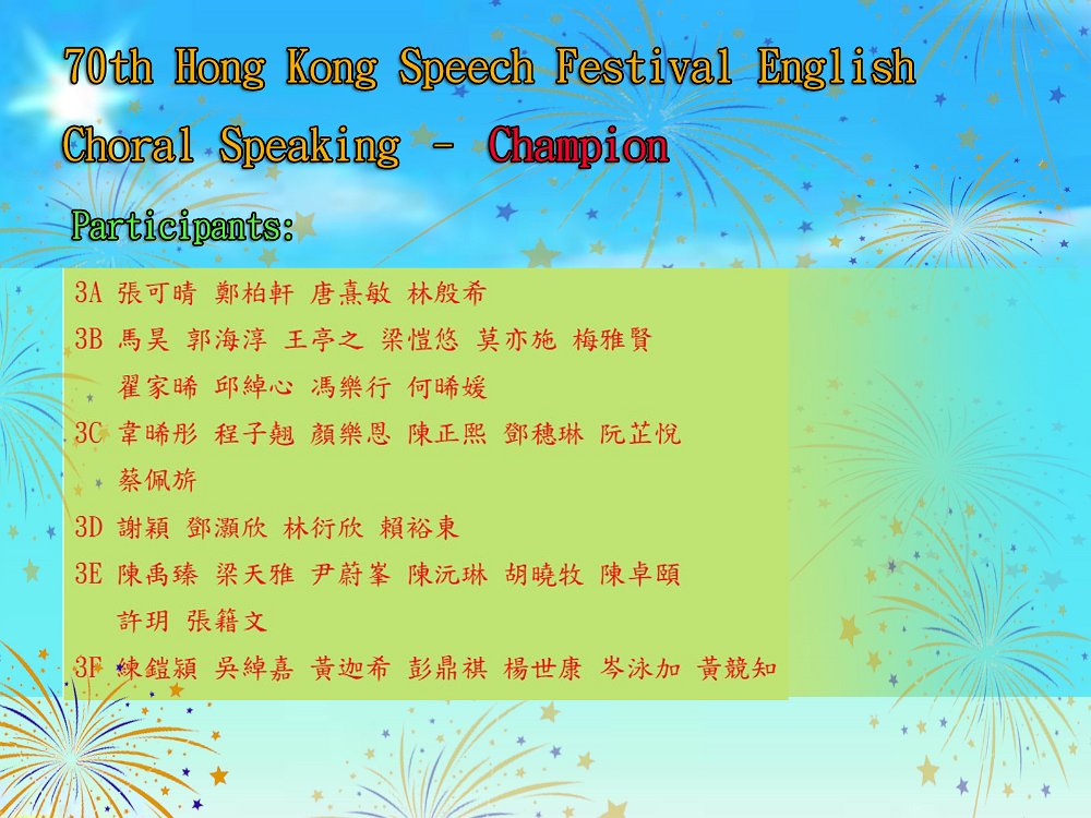 本校榮獲第七十屆學校朗誦節英詩集誦比賽冠軍