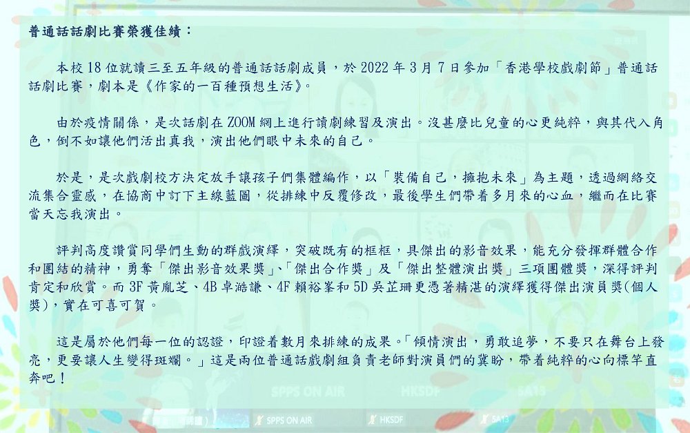 本校榮獲小學普通話話劇比賽多個奬項