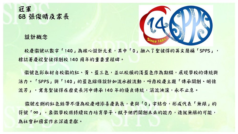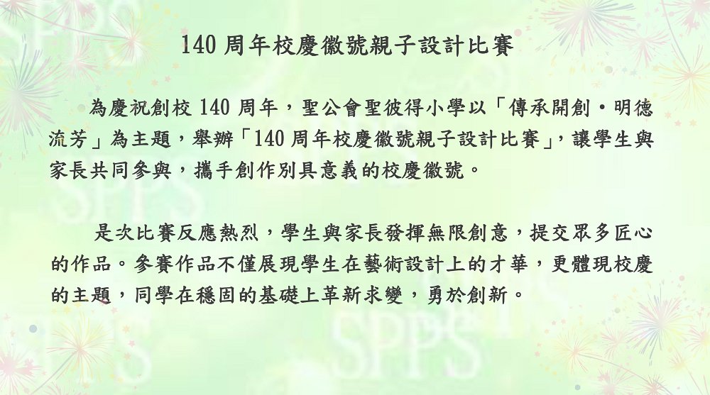 聖公會聖彼得小學140周年校慶徽號親子設計比賽作品欣賞