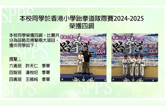 本校同學於香港小學跆拳道隊際賽2024-2025榮獲四銅