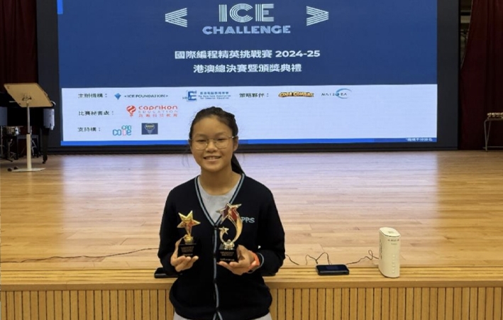 本校六勇班廖詠晞同學榮獲「國際編程精英挑戰賽2024-25 (小學組)」香港區冠軍及全場總亞軍